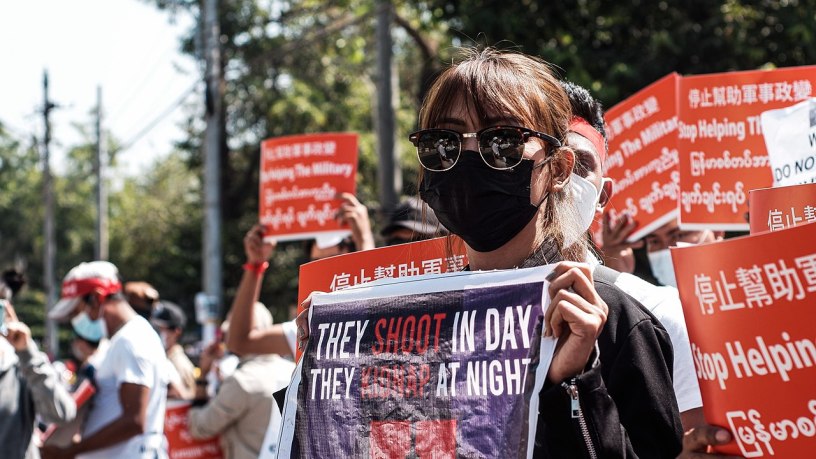*Feature Image: Protest in Myanmar against Military Coup 14-Feb-2021 by MgHla (aka) Htin Linn Aye via Wikimedia Commons